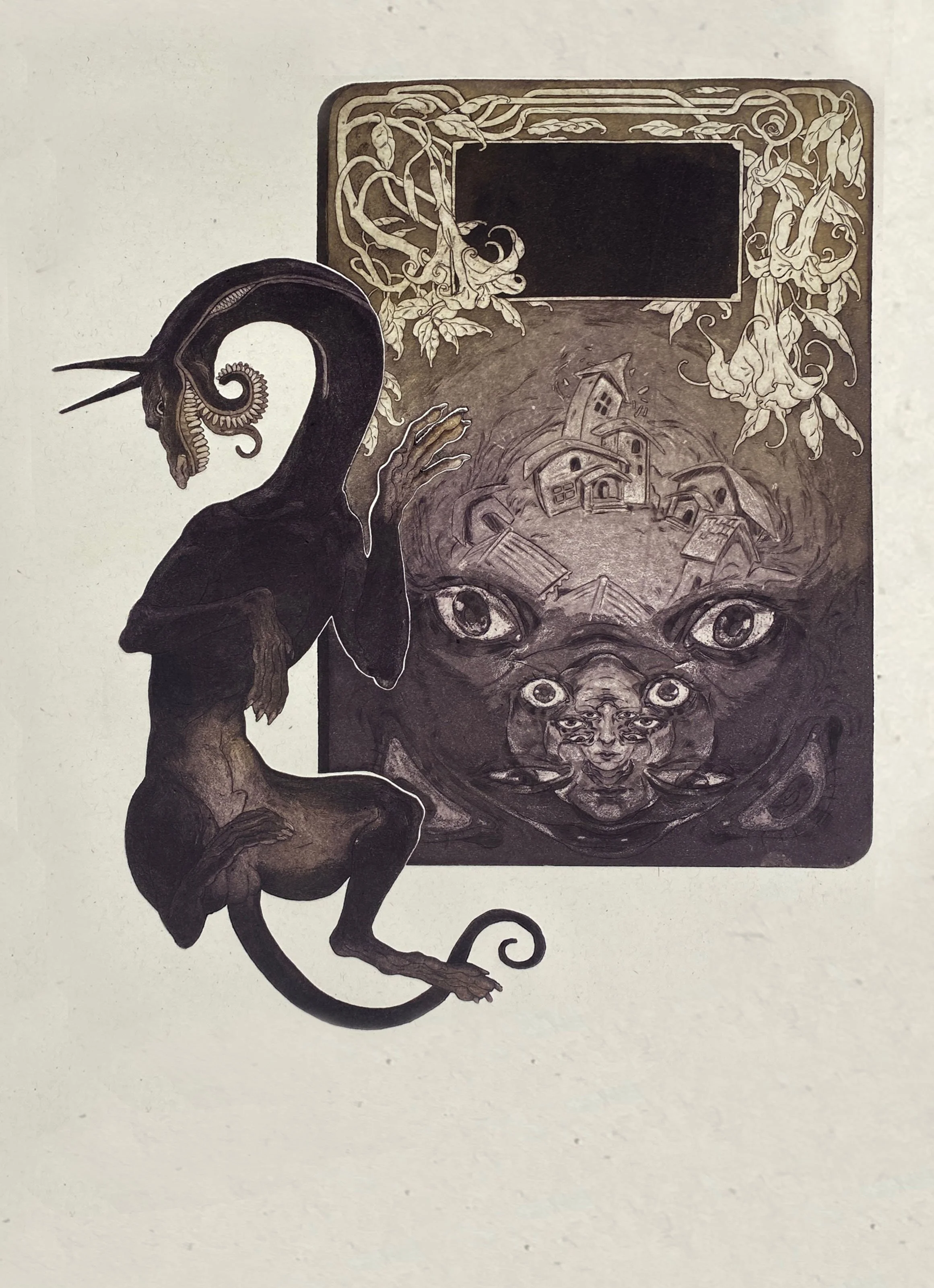 Intaglio etching made up of 2 hand cut copper plates.