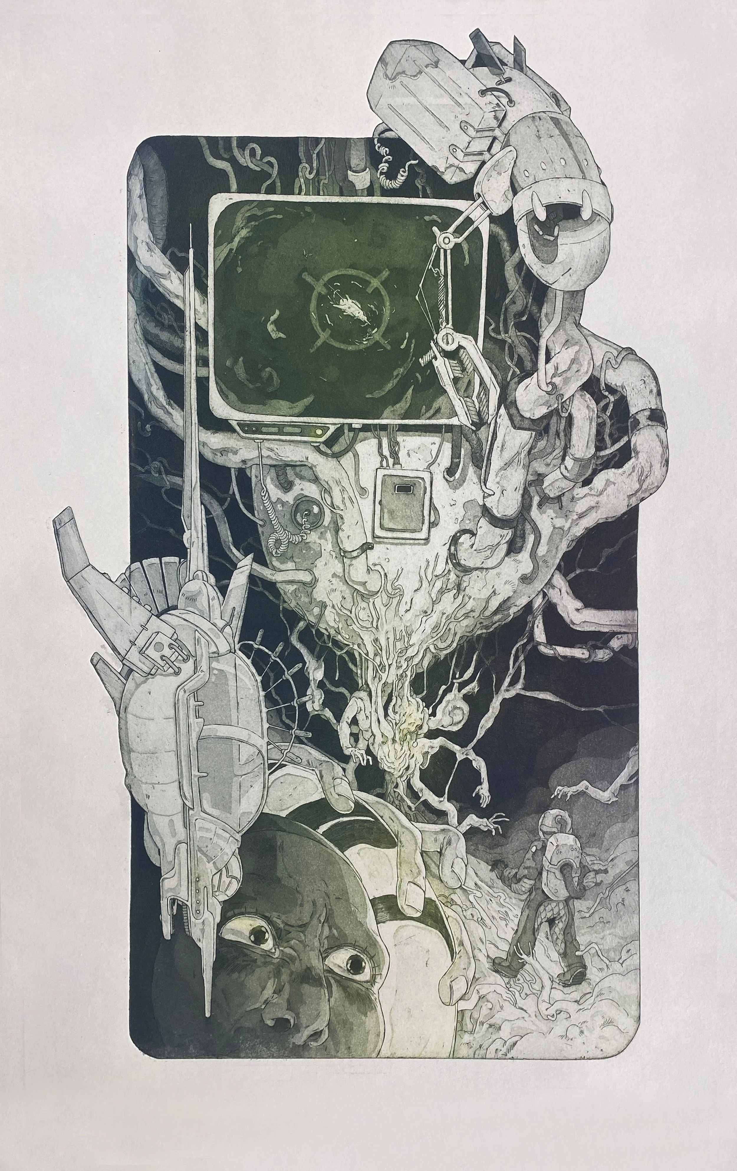 Hand cut intaglio etching.